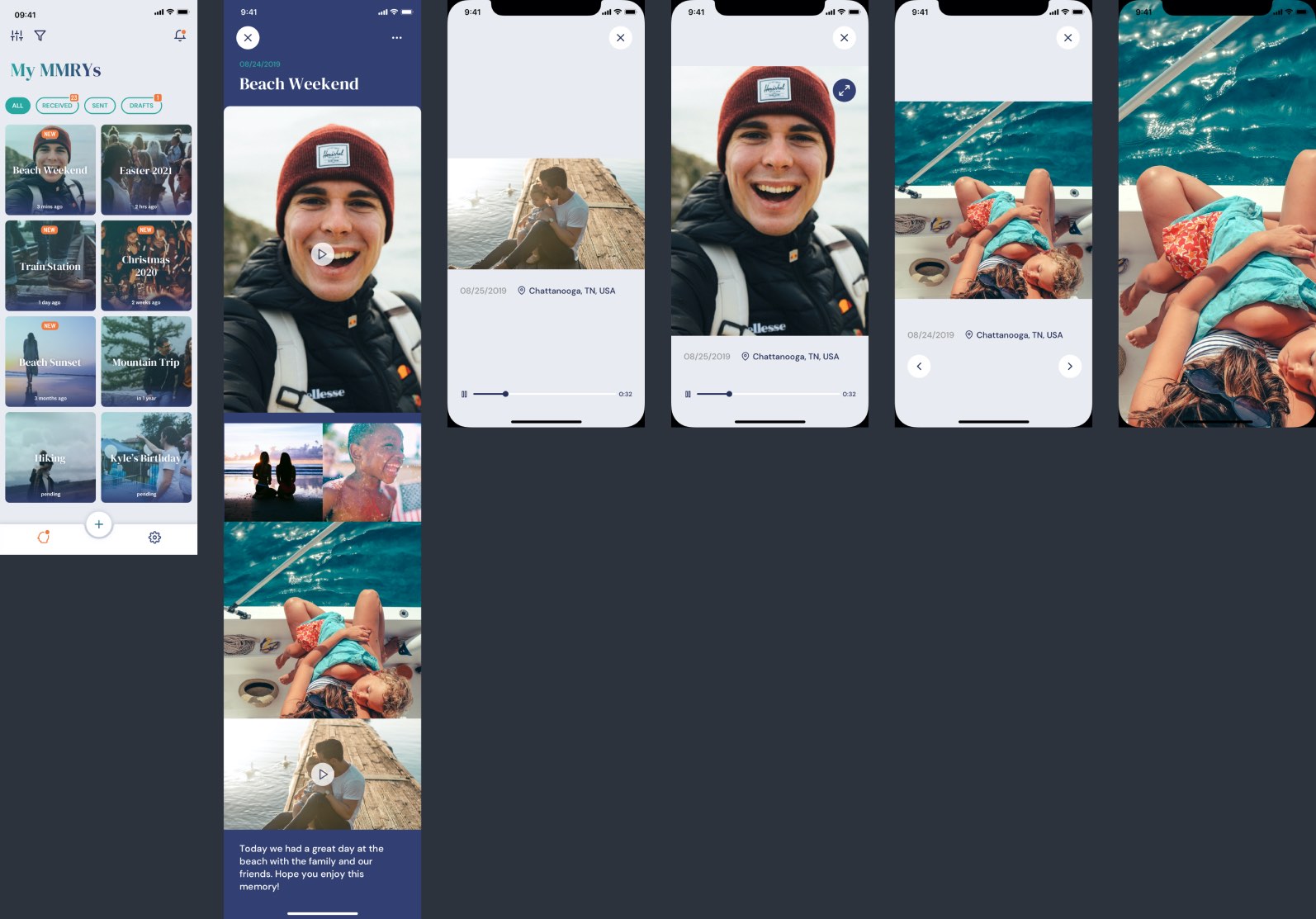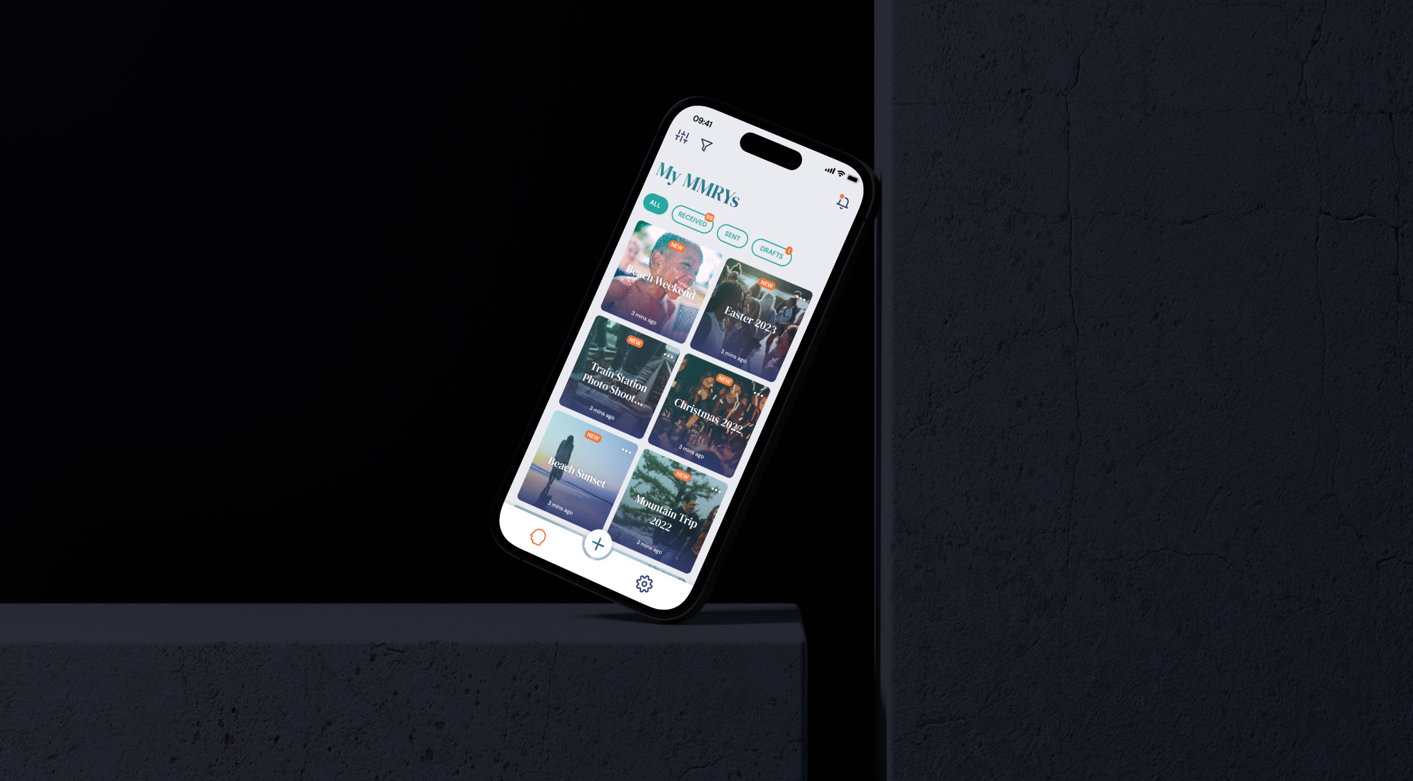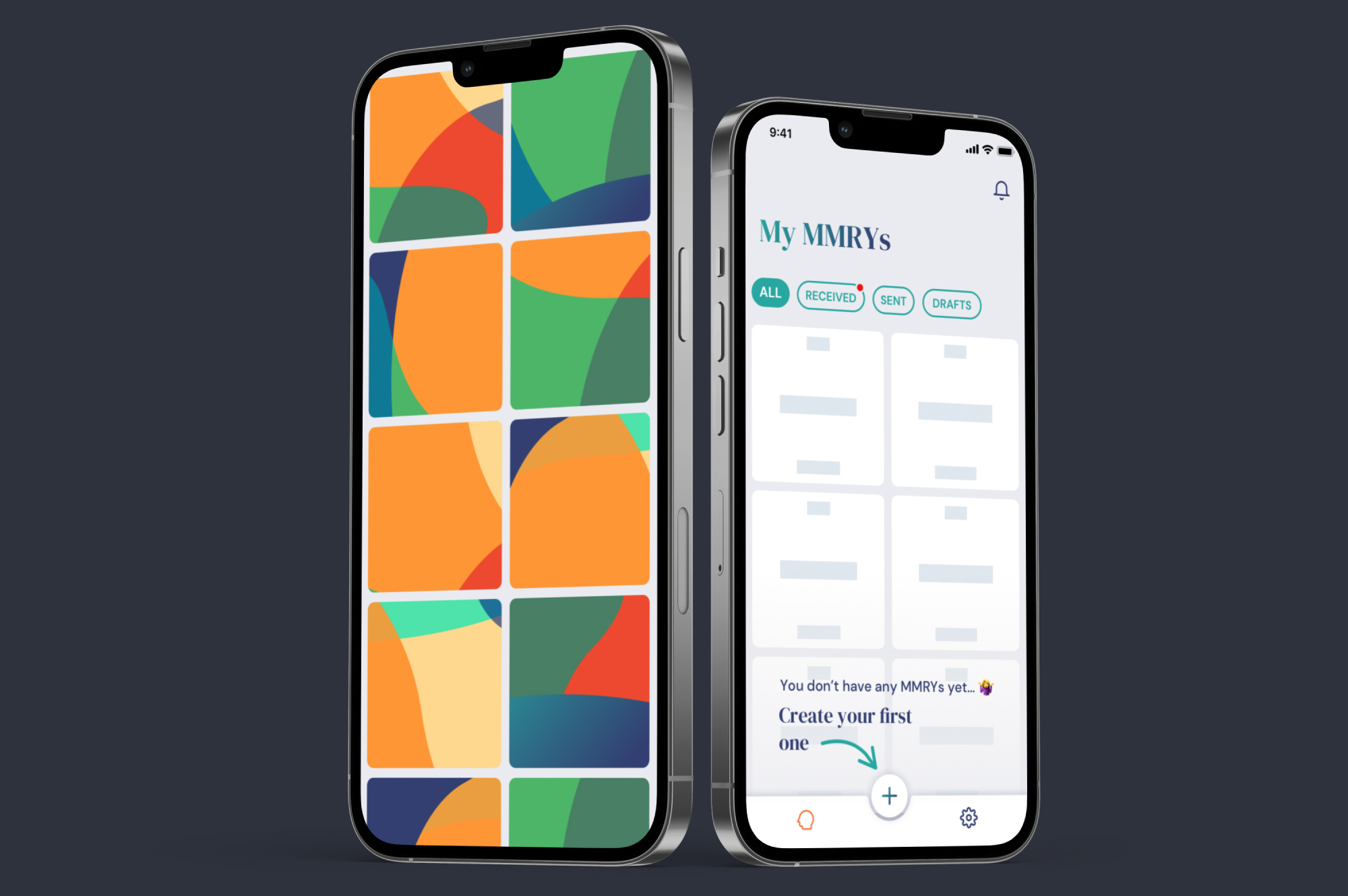 All your memories (MMRYs) in one place. The home screen houses MMRYs you've sent, received, and that are drafts/pending all laid out in an organized grid. Some of the features are filtering, sorting, and notifications.