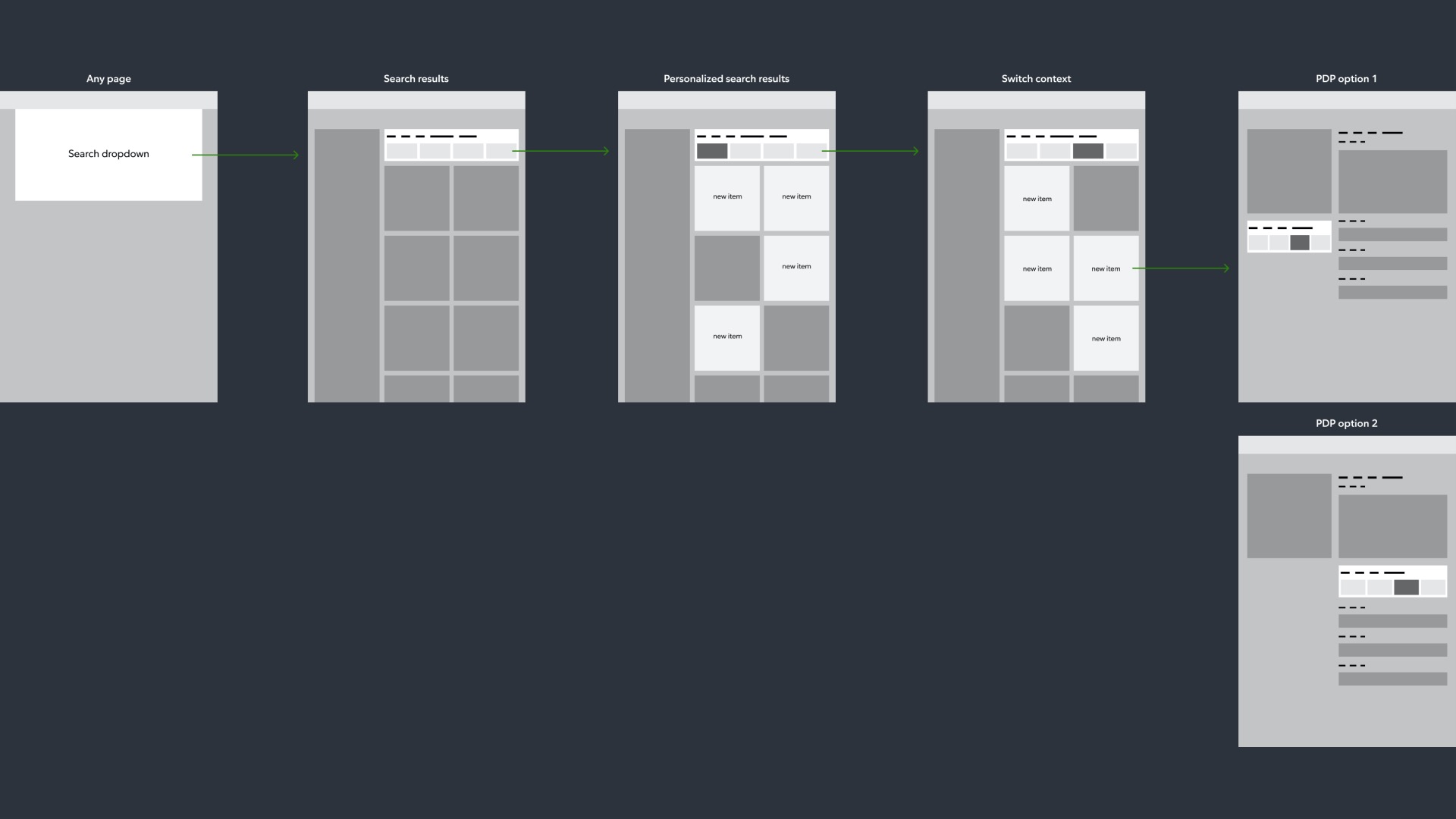I started off with flow diagrams and wireframes to feel out the use cases. Here's one example of a direction: